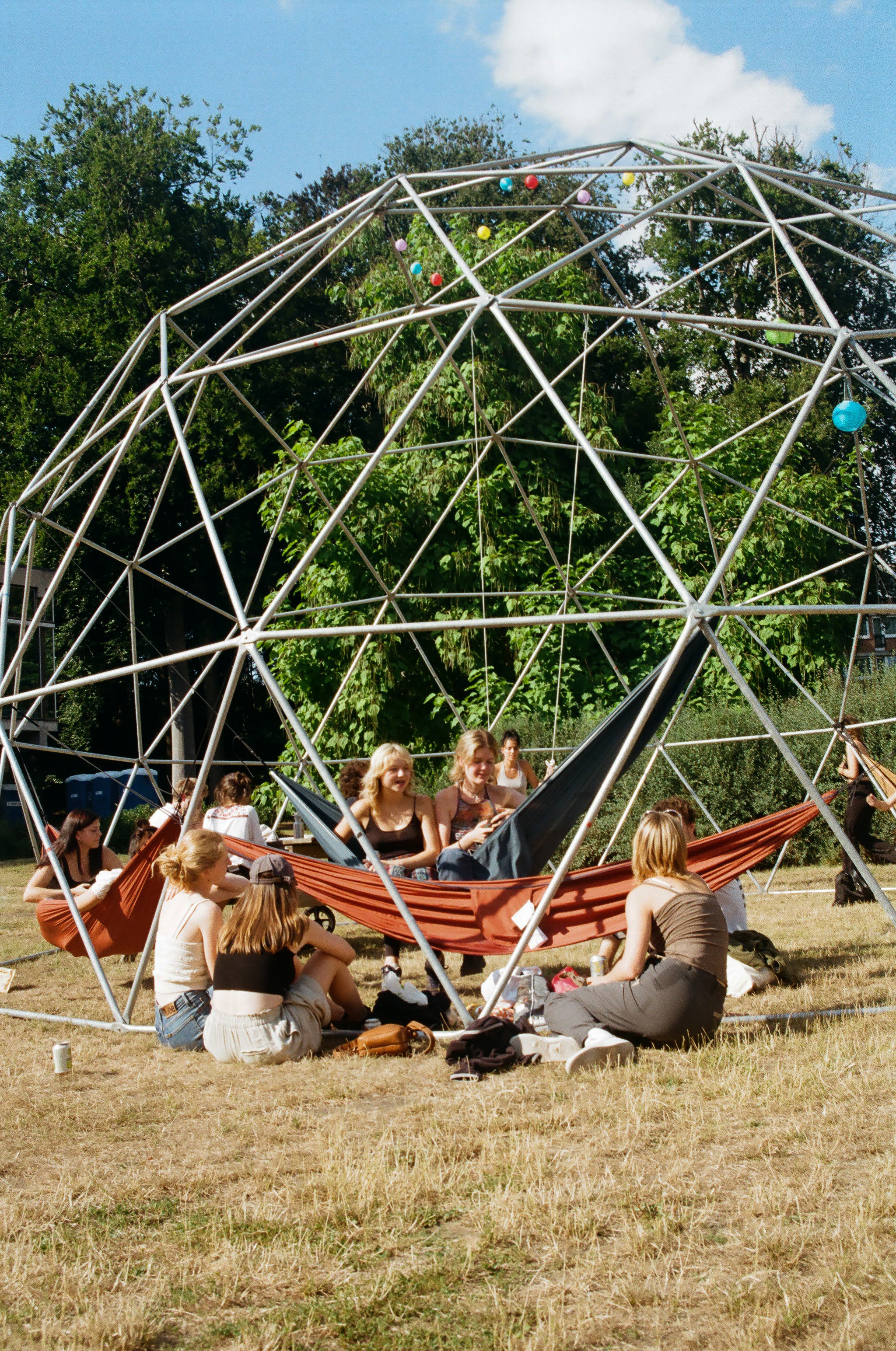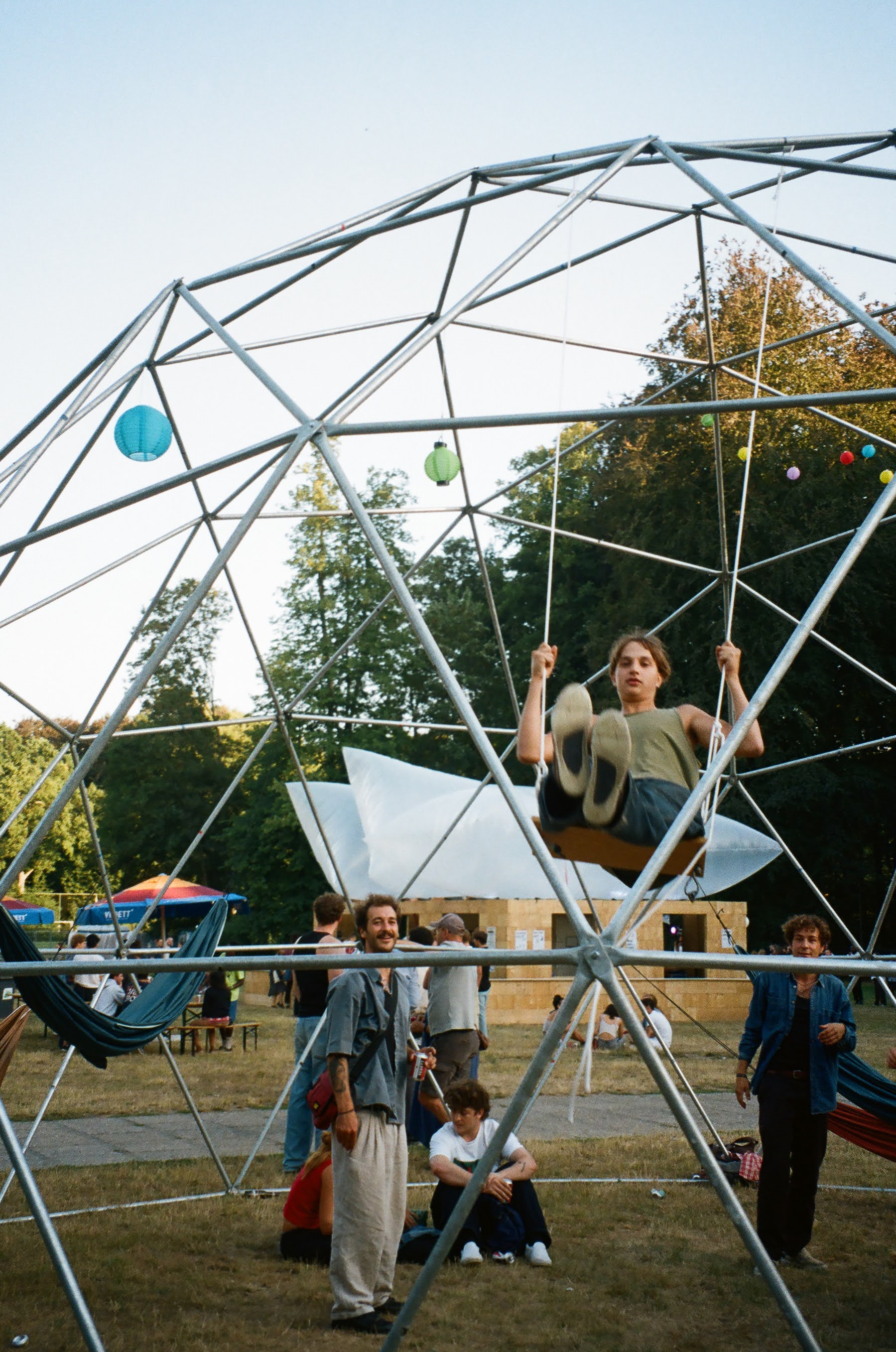 Deze stalen koepel wordt een plek op het festivalterrein waar je even tot rust kan komen. Een indrukwekkende constructie die direct uitnodigt om dichterbij te komen.